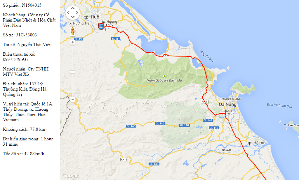 This service will help customers to track the location of your goods have been moved at any time by visual map images. In addition, on this map image, customers can know which vehicles and drivers are transporting their goods. Another very important information is, customers can know exactly where the freight vehicle is, how fast it is running, how many kilometers it is from the delivery location, and the estimated time of delivery. Ants will arrive on delivery for how long.